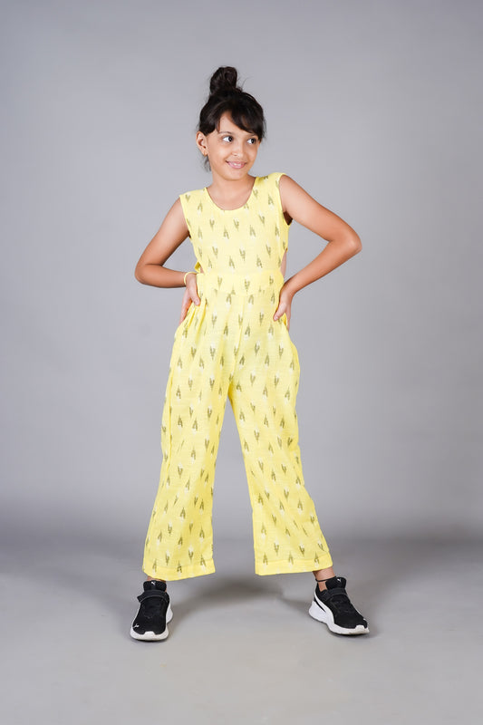 Our gorgeous yellow Ikat jumpsuit with cut-out detail and smocking along the waistline is a...