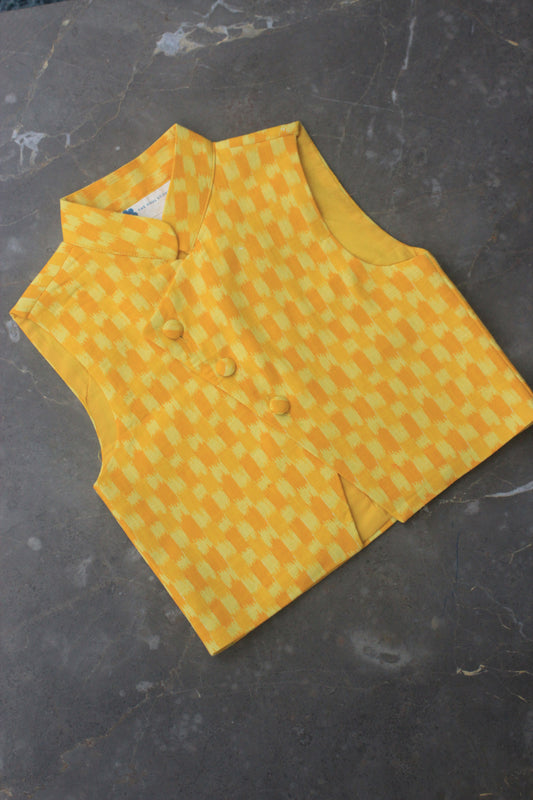 Our pure cotton, kantha work block printed Nehru Jacket is a perfect and comfortable add on...