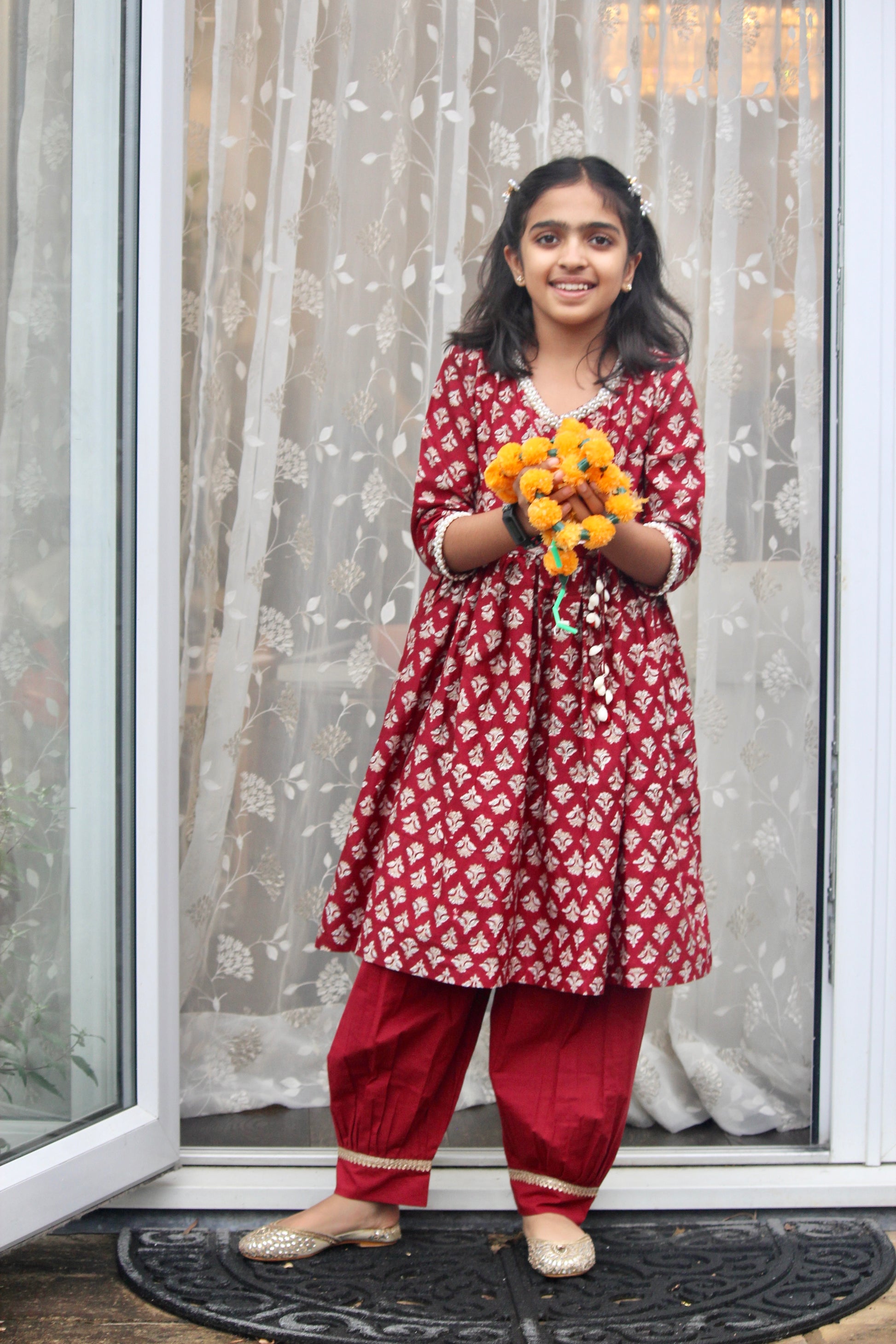 Our chanderi cotton, Angrakha Kurta with Afghani Salwar set is the perfect comfort wear for any festive occasion. Whether it’s a pooja, a wedding or a festive celebration, this surely will be your little ones fashion statement.