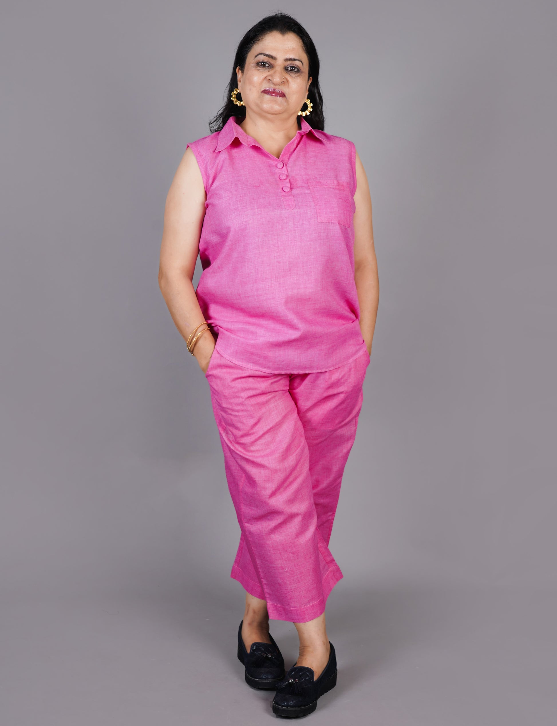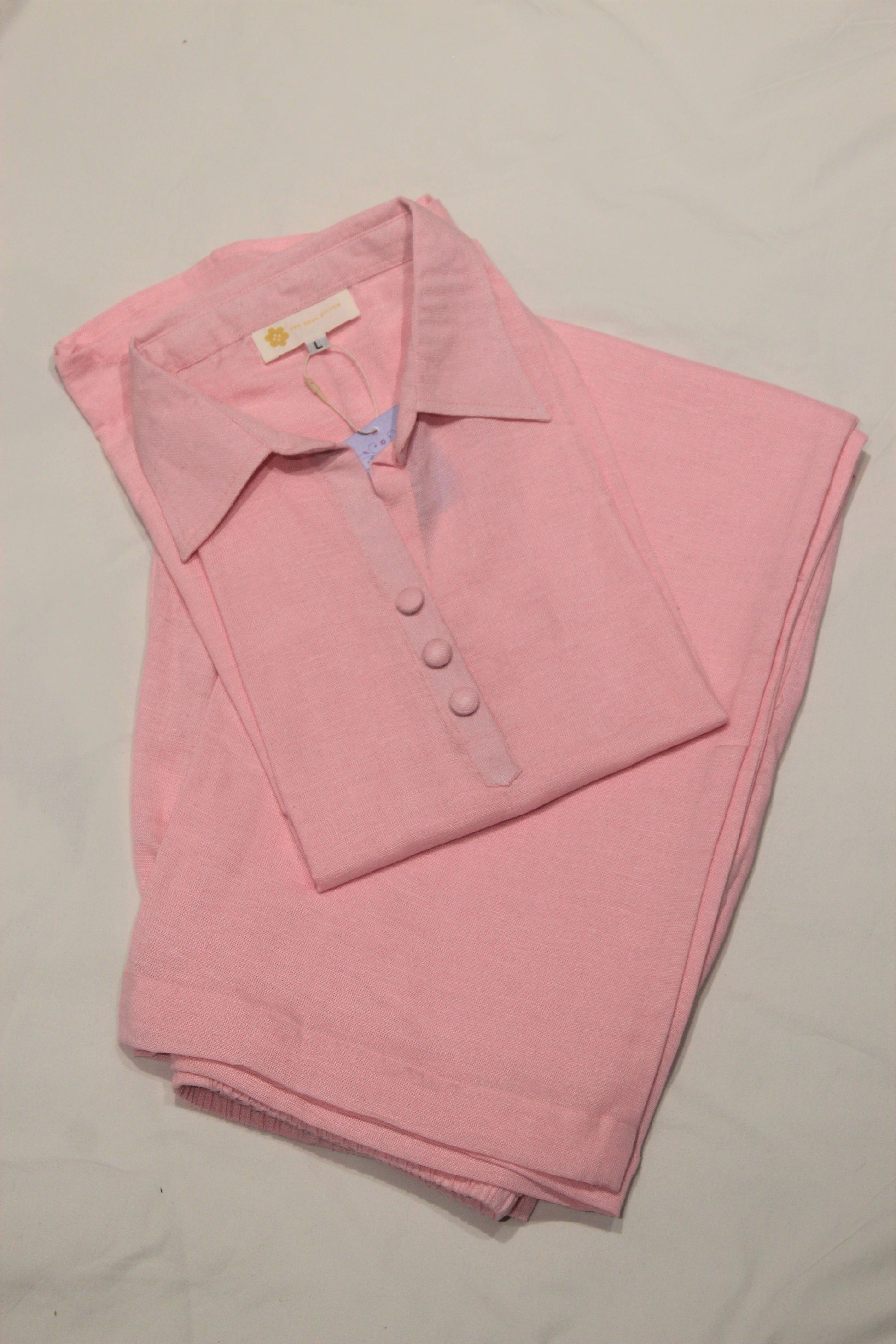Our collared detailed co-ord set in cotton linen increases both the style and comfort quotient for Summer season