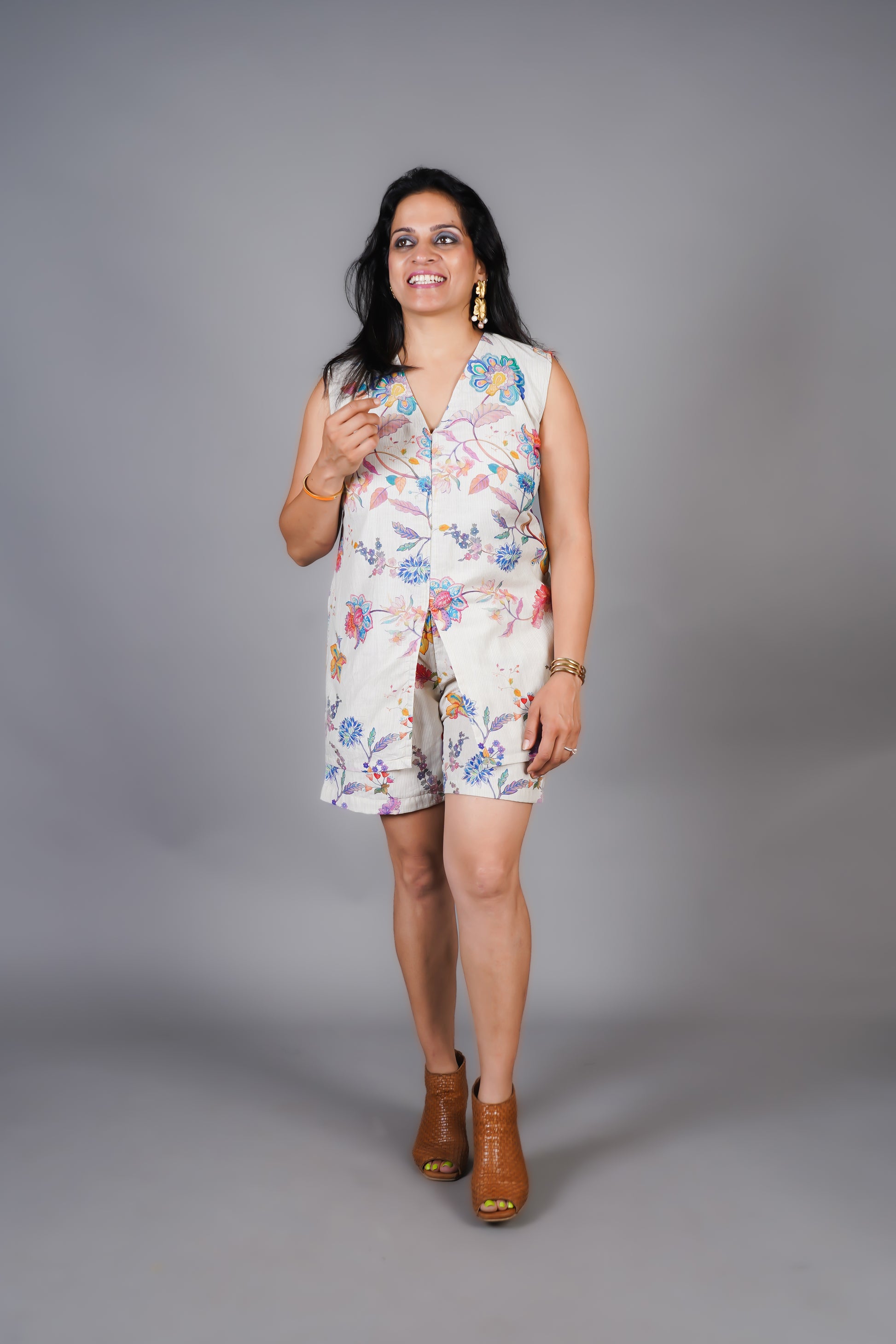 Our cotton silk floral co-ord set with shorts, increases both the style and comfort quotient for Summer season.