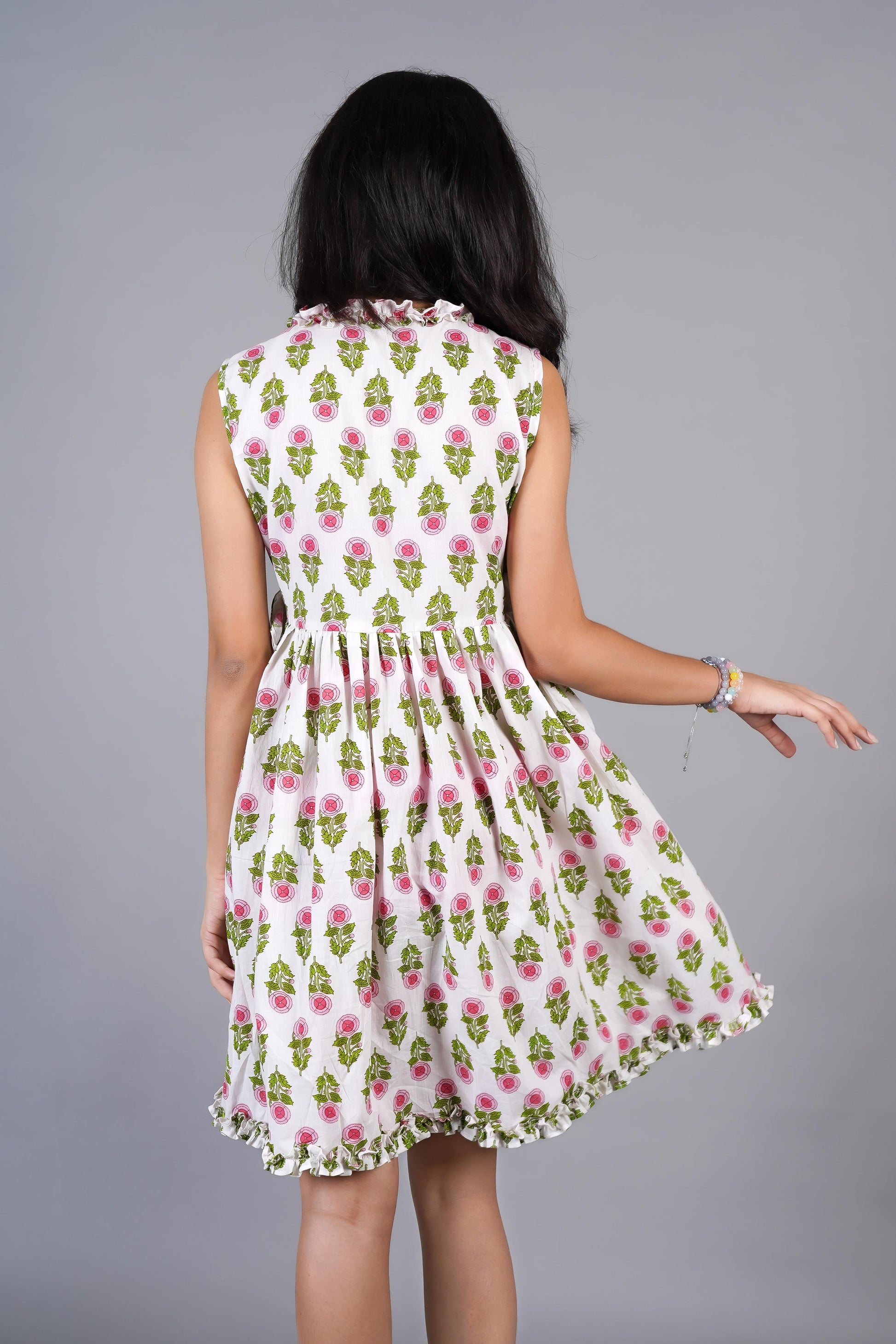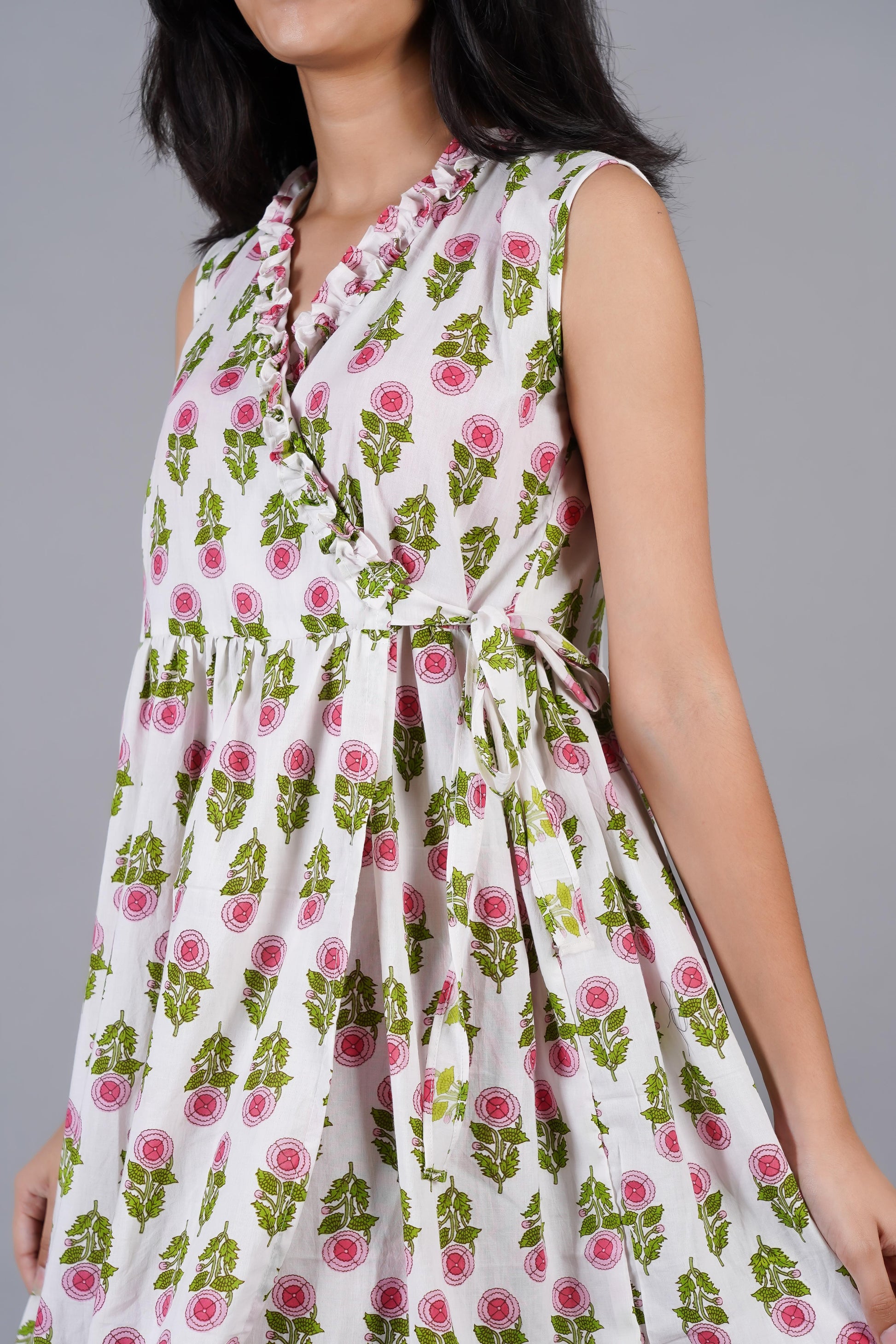 Our beautiful and summery wrap dress in white is only comfortable in a pure cotton material. The ruffle detail along the edges of this outfit brings out the playfulness of this dress.