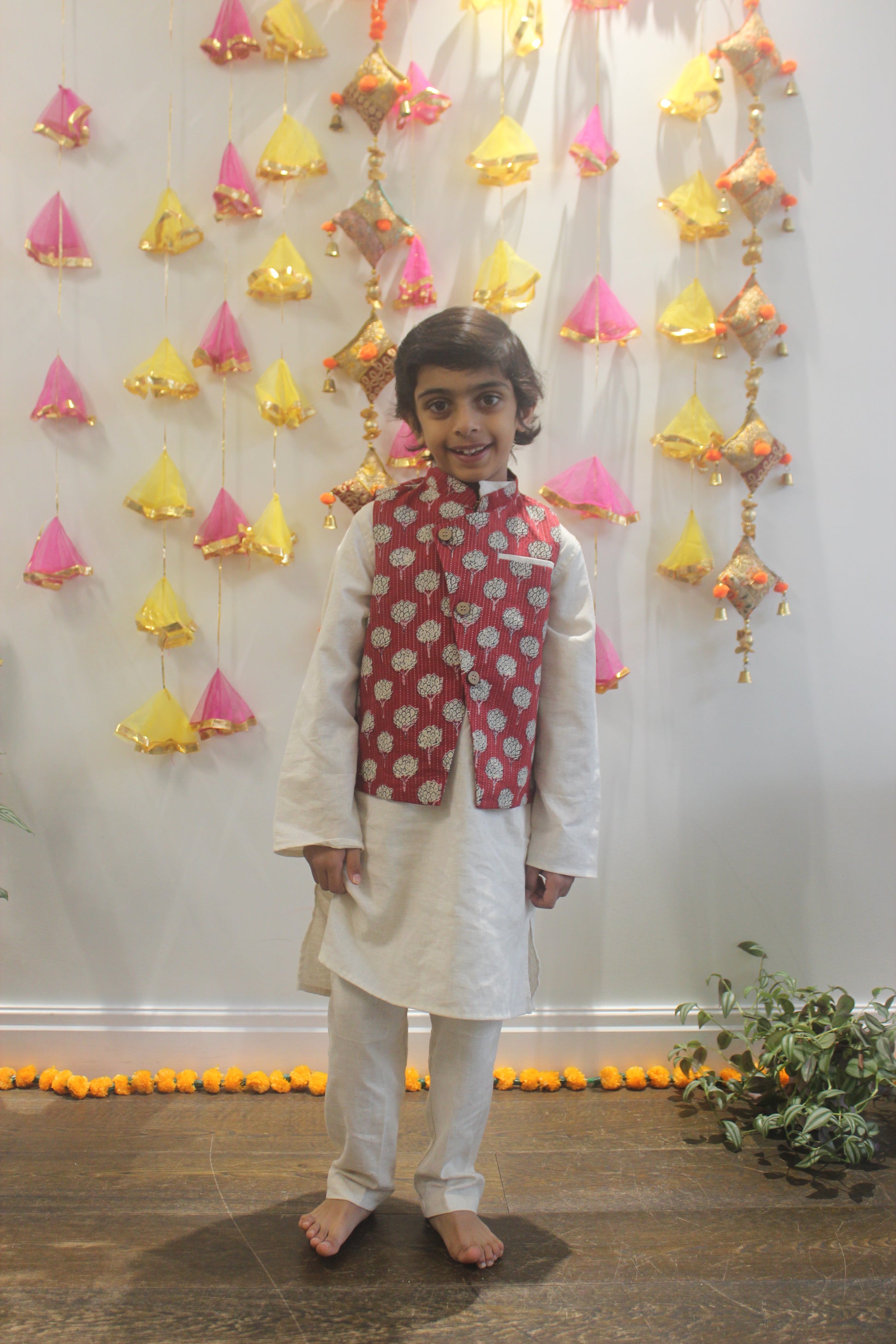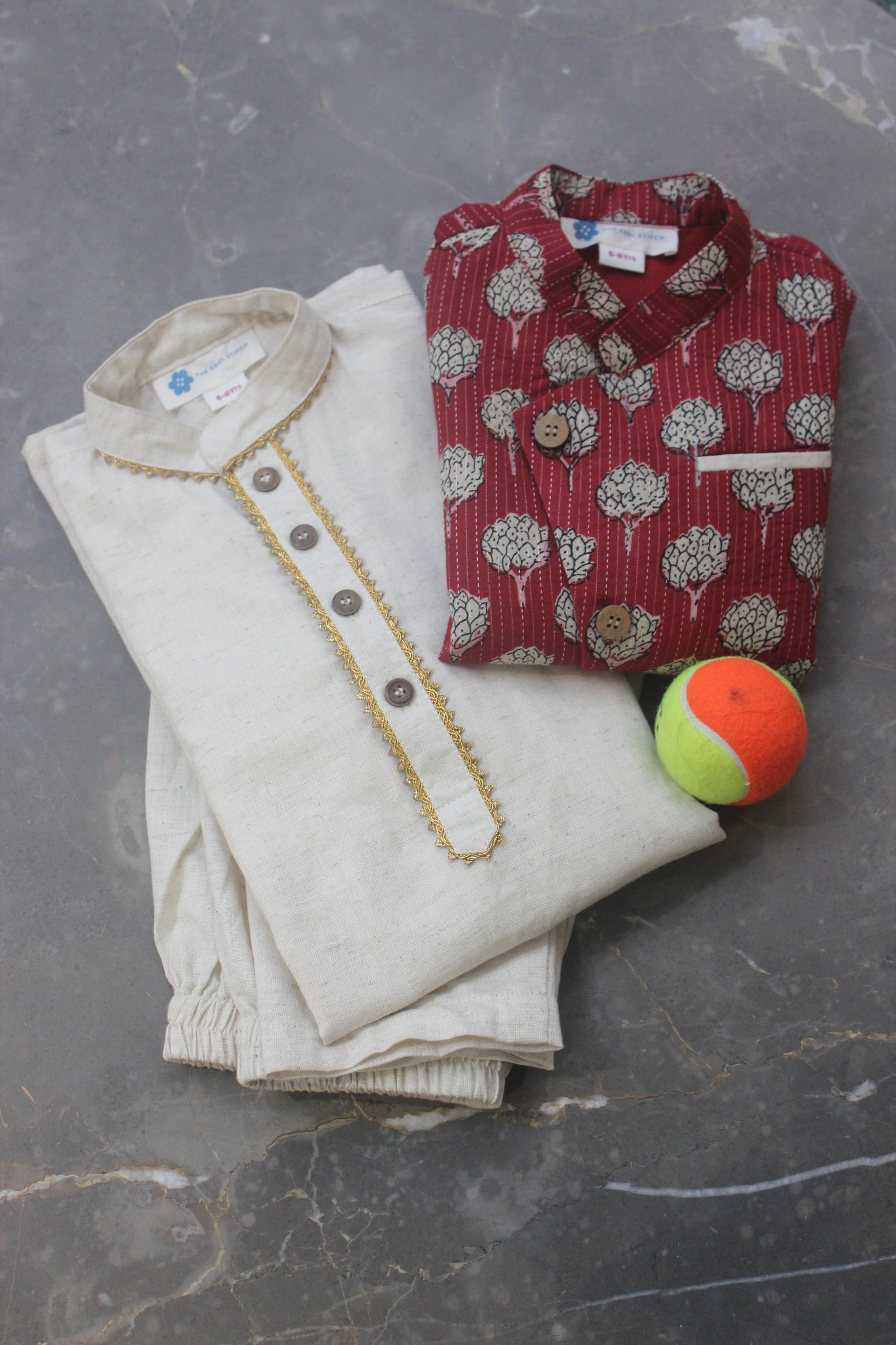 Our pure cotton, Kurta Pyjama with Kantha Nehru Jacket set is a perfect and comfortable add on to your ethnic outfit for every festive occasion.