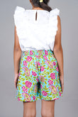 Our blue floral kantha shorts in pure cotton will brighten up your little ones day with comfort and style. It can be well combined with our turquoise kantha top or even our white lace top with ruffle details.