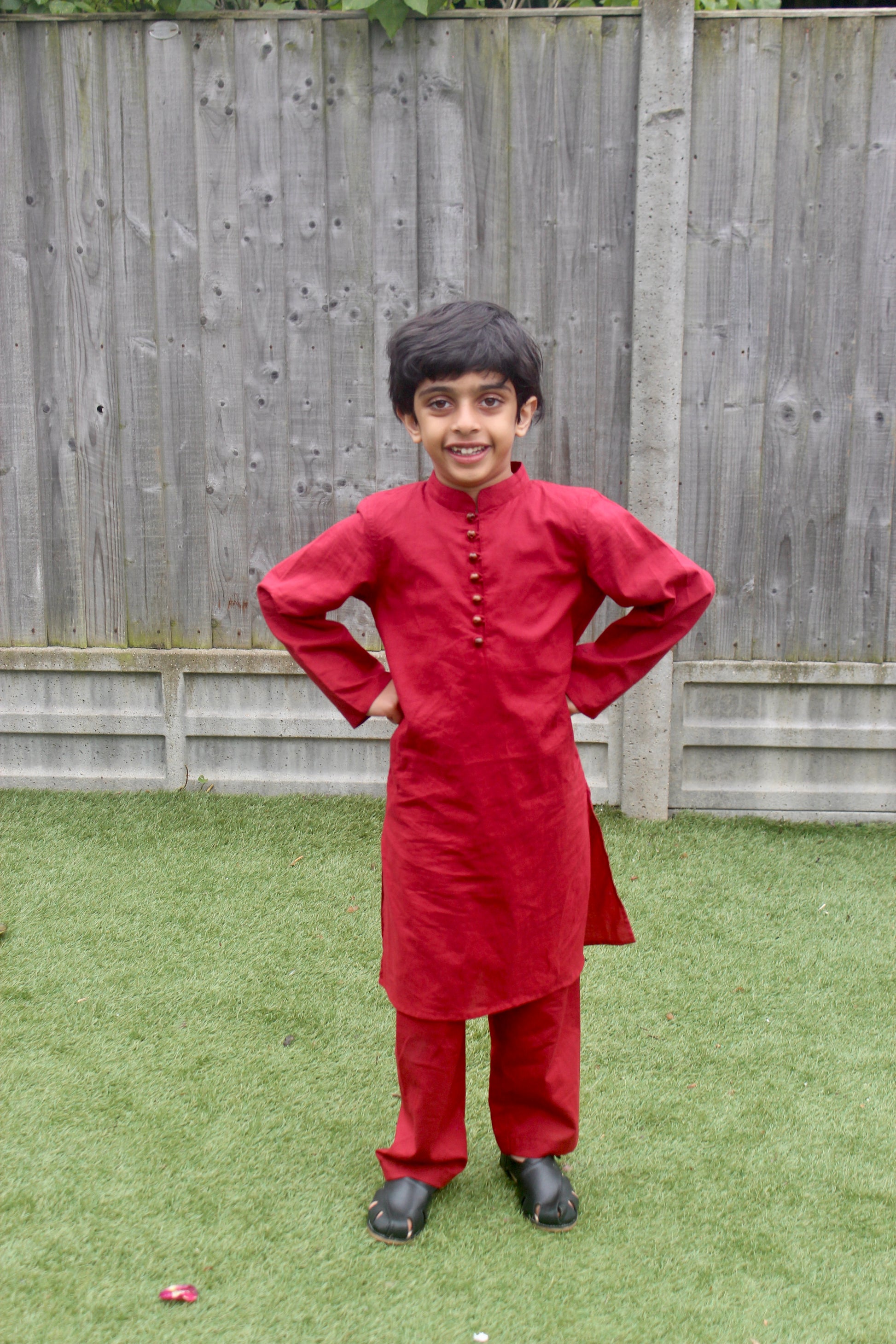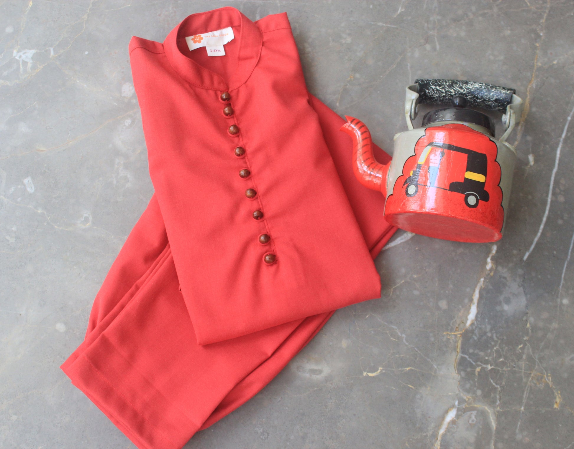 Our pure cotton red kurta pyjama set with wooden button detailing is a perfect and comfortable outfit for every festive occasion.