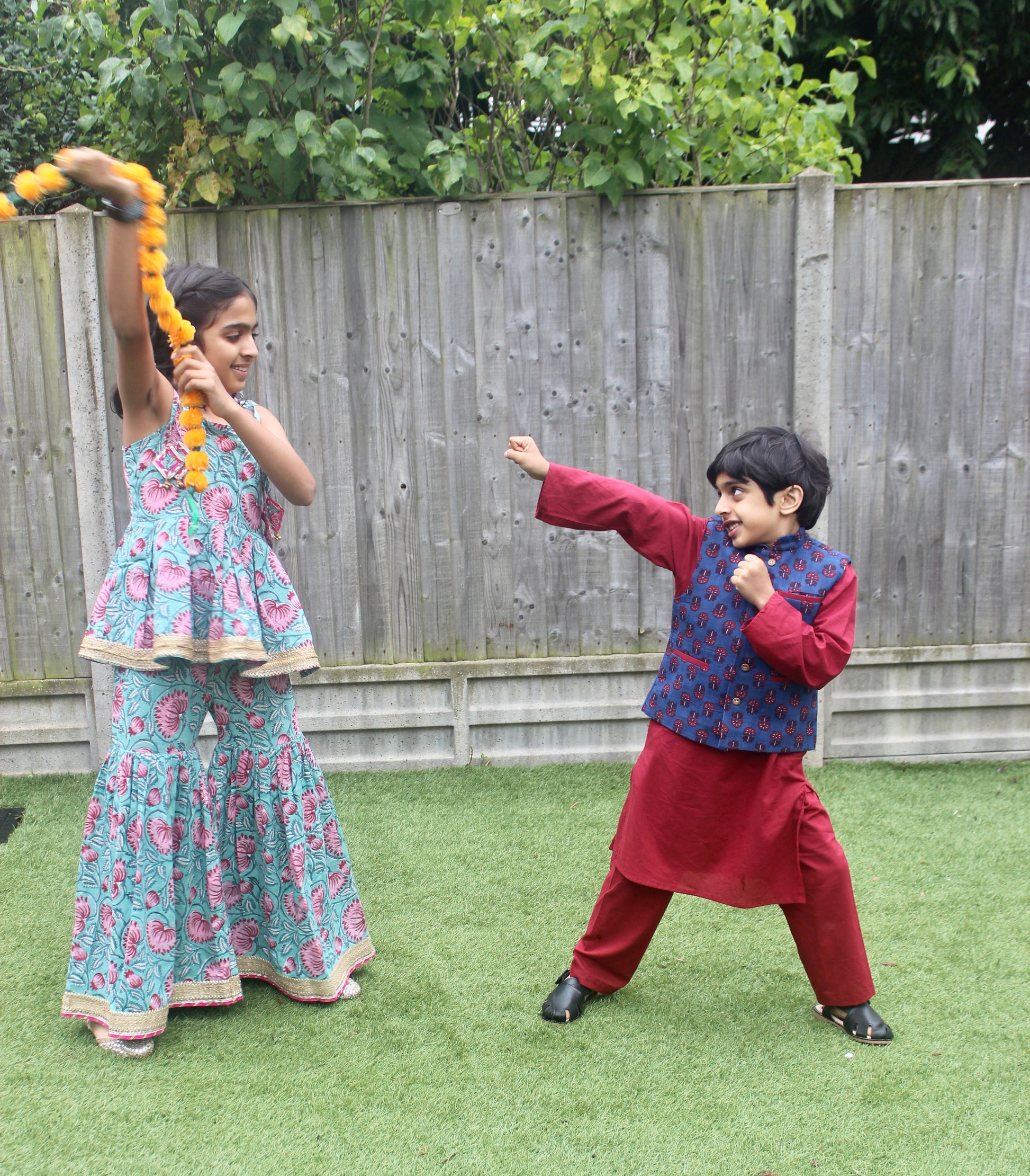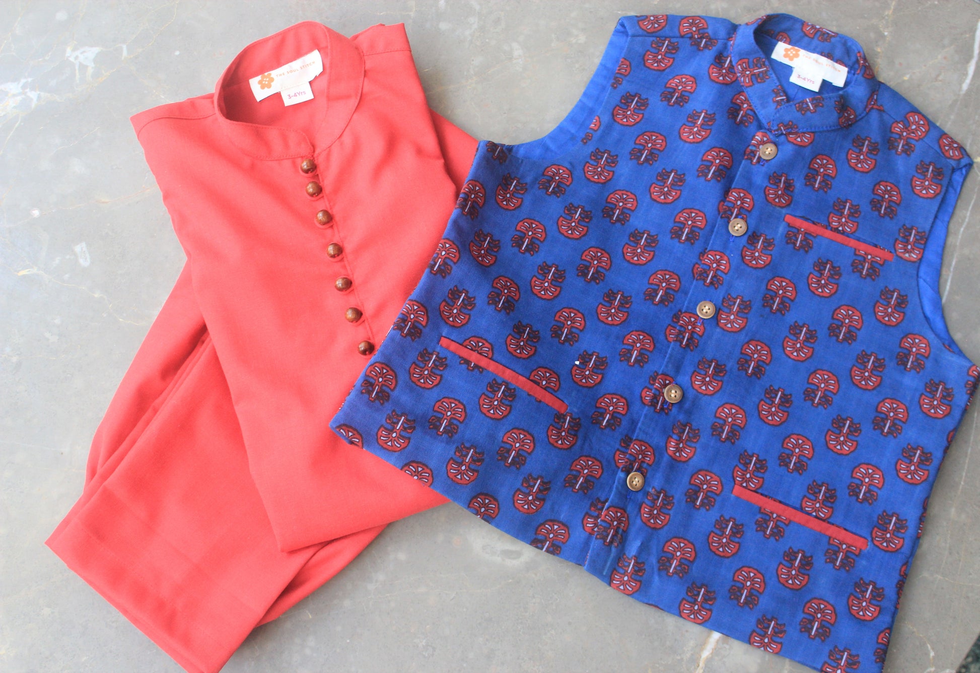 Red Kurta Pyjama with Blue Nehru Jacket